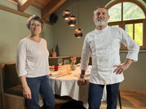 Il ristorante, gestito insieme a mia moglie Chiara, cerca di offrire un’esperienza gastronomica equilibrata tra ingredienti locali selezionati, una cucina leggera e saporita, con un’attenta cura per i dettagli. Le nostre proposte coniugano i piatti tipici della tradizione montana con quelli che sin dall’infanzia ho imparato ad amare, caratteristici della cultura di pianura, non tralasciando però la possibilità di strizzare l’occhio anche ai prodotti ittici dei nostri mari.